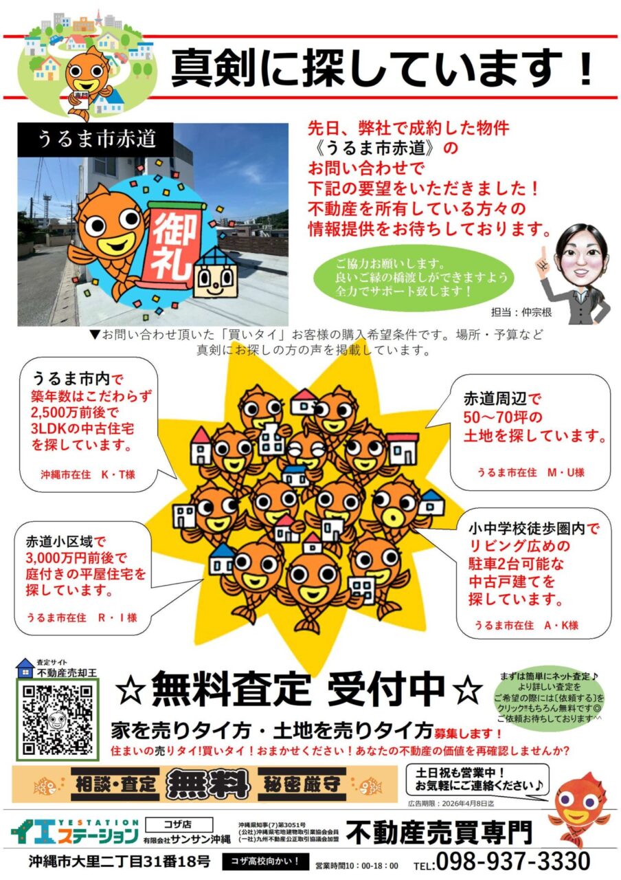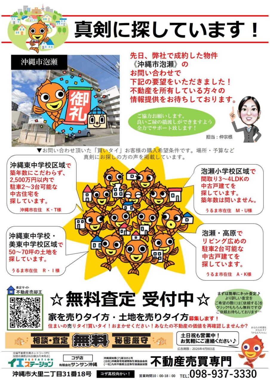 物件購入しタイお客様からのご要望いただきました!(沖縄市泡瀬)