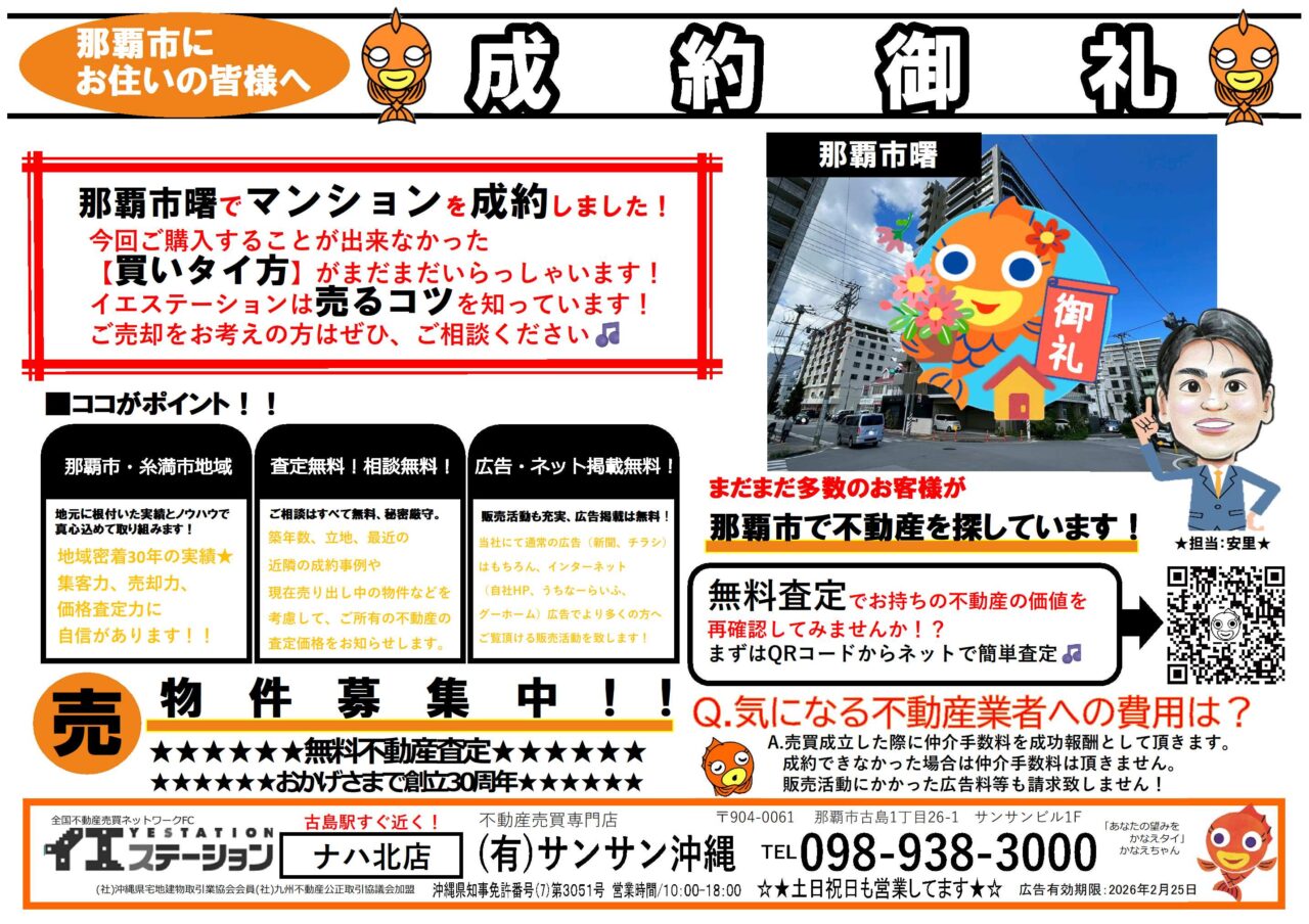 ◇成約御礼◇那覇市曙エリアでマンションを成約しました!